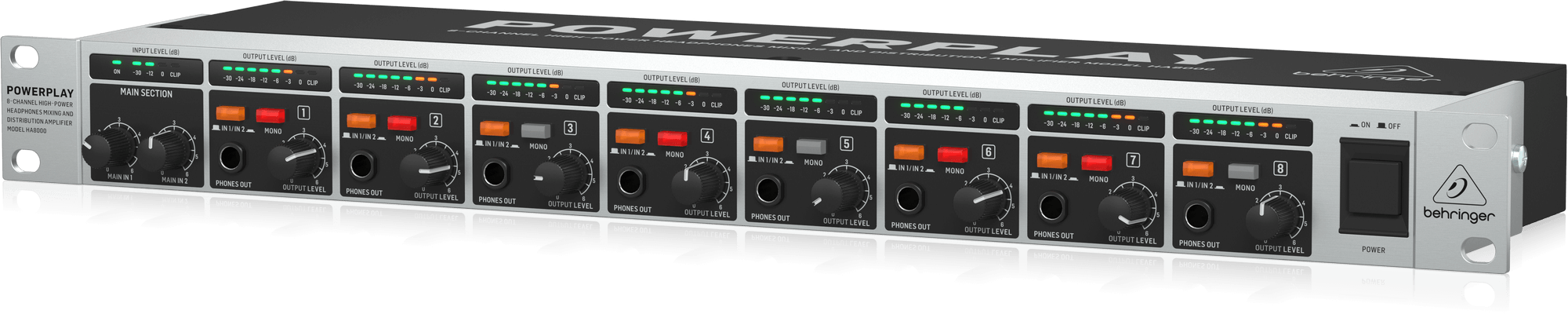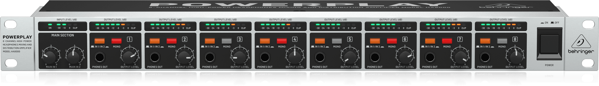Behringer HA8000 Amplificador de Auriculares Rackeable 8 salidas, múltiples entradas