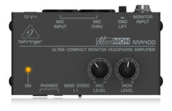 El ultracompacto MICROMON MA400 es el mezclador de monitor personal ideal para el artista que siempre pide “más yo”. Con conectores Mic In y Mic Thru flexibles y un interruptor Ground Lift, así como una entrada de monitor estéreo con un control de nivel de monitor dedicado y un interruptor mono/estéreo, el MA400 tiene todo lo que necesita para satisfacer incluso al artista más exigente en el escenario.