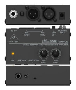 Capaz de funcionar tanto en estéreo como en mono, el MA400 es un pequeño y potente mezclador que le permite controlar dos fuentes independientes, como un micrófono y la alimentación del monitor desde su mezclador principal. Simplemente ajuste el control de nivel de monitor del MA400