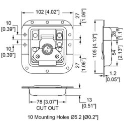 Pestillo de mariposa empotrado PennBrite Zinc MOL® mediano con soporte para candado, de 13 mm de profundidad y 27 mm de desplazamiento. Capacidad máxima de carga: 90 kg. Compatible con placa trasera L0906.