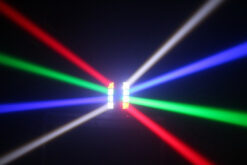 EFECTO DE LED DE 8 RAYOS DE 3W CADA UNO, QUE SE PROYECTAN DIVIDIDOS EN DOS BARRAS INDEPENDIENTES Y PRODUCEN DIFERENTES SECUENCIAS AL RITMO DE LA MÚSICA O CONTROLADOS DESDE UNA CONSOLA.