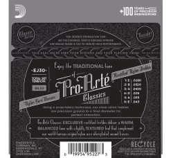 Todas las cuerdas agudas Pro-Arte están fabricadas con nuestro nailon extruido interno, lo que garantiza cuerdas consistentes con una entonación precisa. Los bajos Pro-Arté están enrollados con cobre plateado en un núcleo de nailon multifilamento para un tono consistente y cálido, pero con proyección.