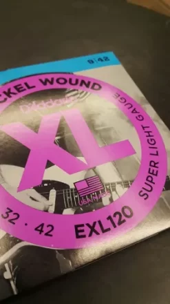 EXL120, uno de los mejores juegos de cuerdas de D’Addario, ofrece flexibilidad estupenda y el tono mordaz. Un estándar para muchos eléctrico Herida guitars.XL Níquel, cuerdas de guitarra eléctrica más populares de D’Addario, son precisión herida con acero niquelado sobre un cuidadosamente elaborado, de forma hexagonal, núcleo de acero de alto carbono. El resultado, cadenas con larga duración, distintivo tono brillante y excelente entonación, es ideal para la más amplia variedad de guitarras y estilos musicales. Súper medidores de luz para una máxima flexibilidad y el tono mordaz Ronda herida con acero niquelado para distintivo tono brillante Ecológico, embalaje resistente a la corrosión para las cadenas que están siempre fresco hecho en los EE.UU. para la más alta calidad y el rendimiento de Cuerda Indicadores: Acero Liso .009, .011 , 0.016, níquel Wound .024, .032, .042