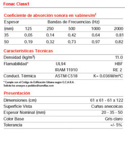 Placas Fonoabsorbentes con cuñas anecoicas que no propagan llama.