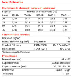Alto coeficiente de absorción sonora. Excelente terminación en forma de cuñas anecoicas. Mayor