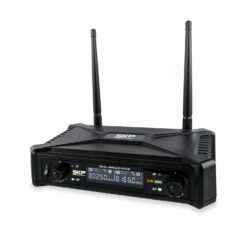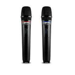 El nuevo micrófono inalámbrico dual SKP UHF 300D presenta las últimas tecnologías de transmisión inalámbrica digital y es extremadamente fácil de usar. Sus frecuencias y canales UHF se seleccionan para evitar interferencias.
