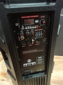 Bafle con woofer de 15″ de 8 Ohm, bobina de 3″, driver de titanio 44mm, DSP con funciones de reproducción , Ecualizador grafico digital y analógico, entrada de microfono TRS/XLR, entrada de linea PLUG 3,5/XLR/RCA.