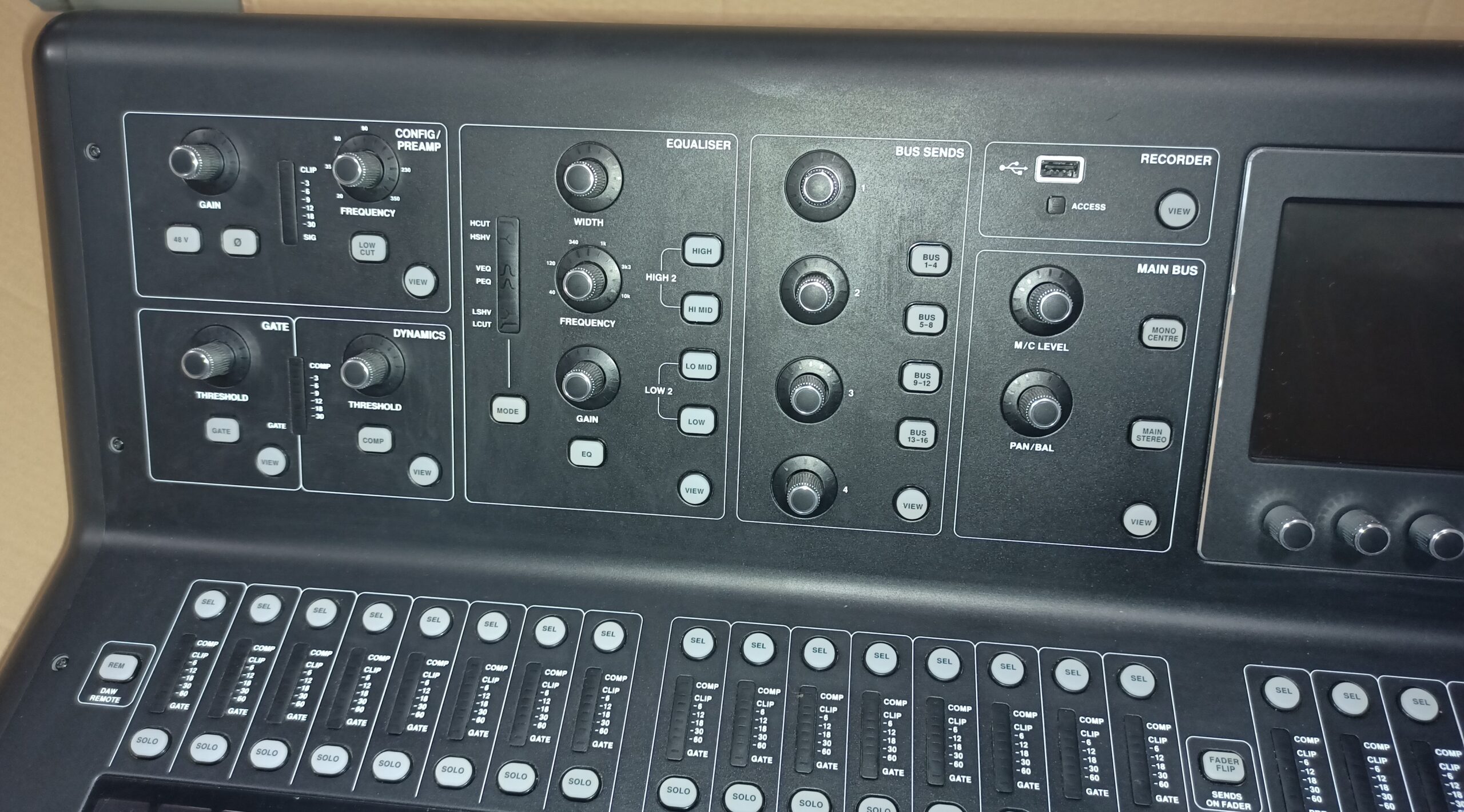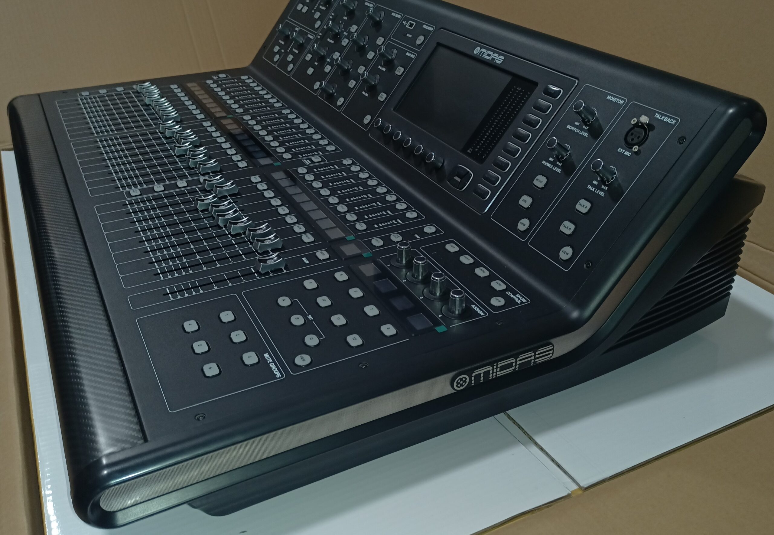 Consola digital para directo y estudio con 40 canales de entrada, 32 preamplificadores de micrófono Midas PRO y 25 buses de mezcla y grabación multipista en directo.