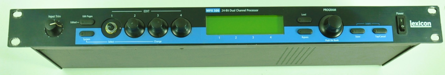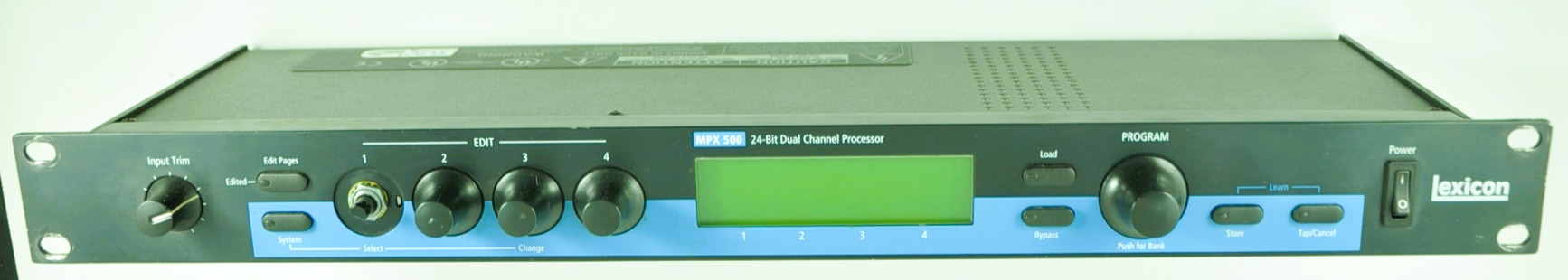 Impulsado por Lexichip™ patentado por Lexicon, el MPX 500 tiene 240 presets con programas de reverberación clásicos como Ambience, Plate, Chamber e Inverse, así como Tremolo, Rotary, Chorus, Flange, Pitch, Detune, 5.5 second Delay y Echo. El procesamiento de dual Channel le brinda dos efectos independientes en una variedad de configuraciones: estéreo dual (paralelo), cascada, mono dividido y mono dual. Una gran pantalla gráfica y perillas de edición dedicadas le brindan acceso instantáneo a los parámetros de cada ajuste preestablecido y un modo de aprendizaje sencillo permite aplicar parches MIDI a los controles del panel frontal. Además, los retrasos controlados por el tempo y las tasas de modulación se bloquean en el reloj Tap o MIDI, y los tempos Tap se pueden controlar mediante la entrada de audio, el botón Tap del panel frontal, el interruptor de pedal dual, el controlador MIDI externo o el cambio de programa MIDI.