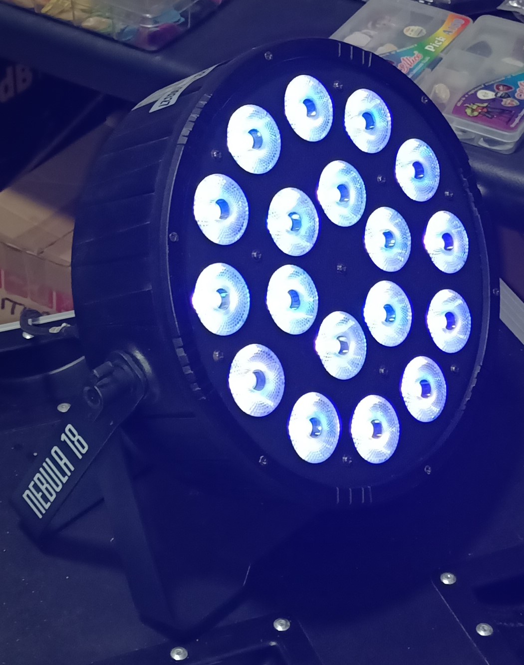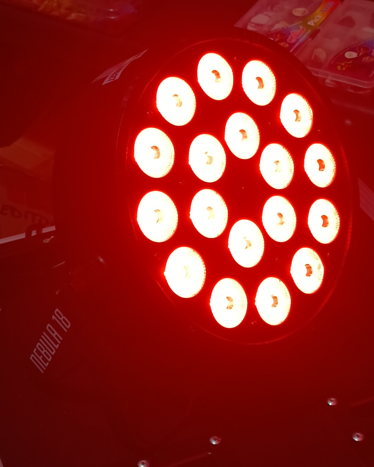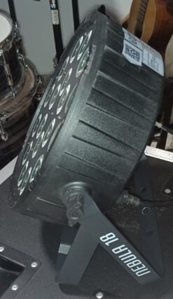 Nebula 18 es un bañador profesional que cuenta con 18 LEDs RGBAW+UV de 12W, con un ángulo de haz de 25º. Su tecnología LED de seis colores permite una mezcla suave sin sombras multicolor, logrando innumerable cantidad de colores profundamente saturados. Nebula 18 tiene dimmer lineal para todos los colores, efecto UV, función estrobo, 33 macros de color y una función de balance de blanco que lo convierte en una opción ideal para aplicaciones de tipo audiovisual. Código certificado seguridad eléctrica: MHL-120