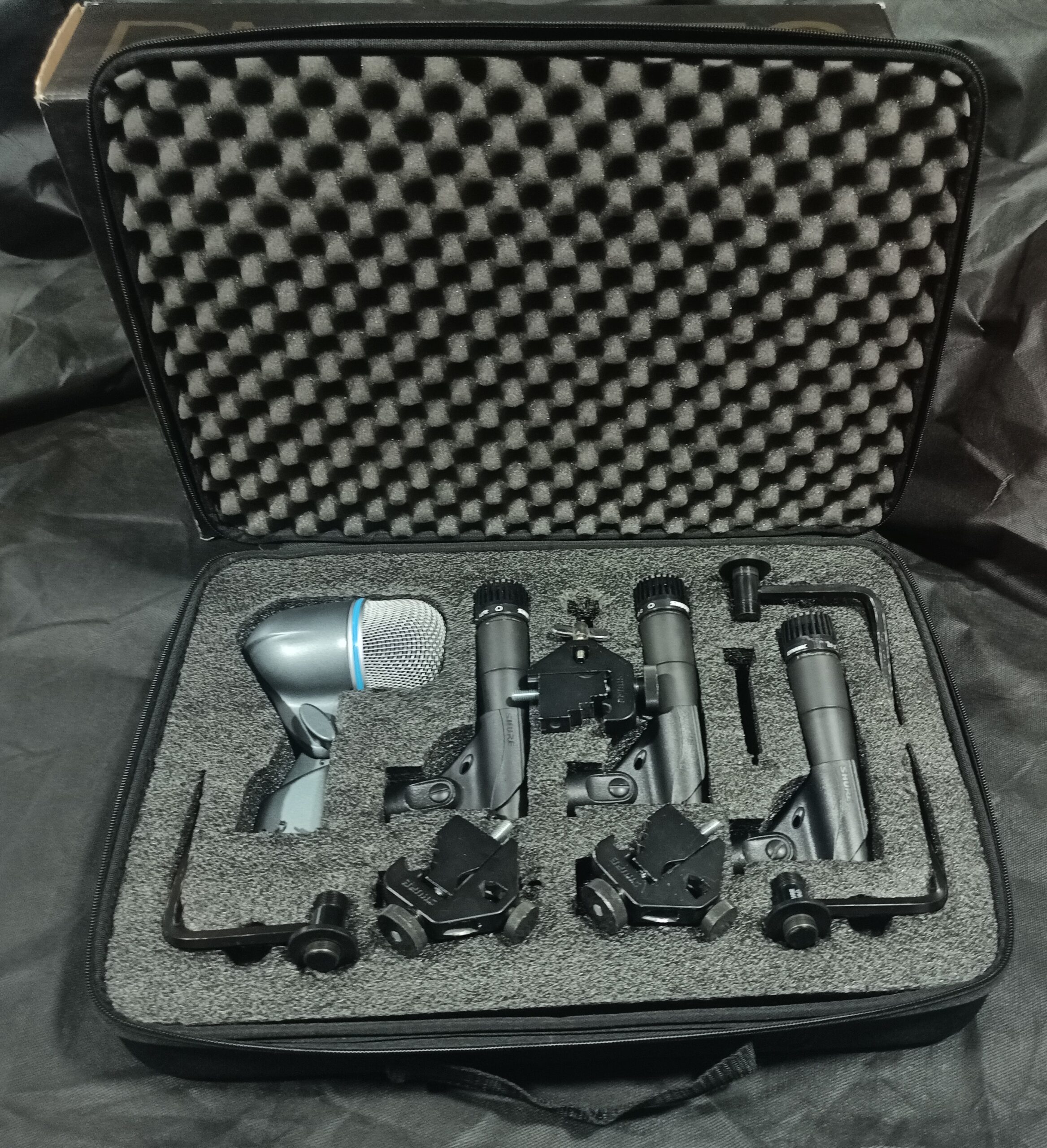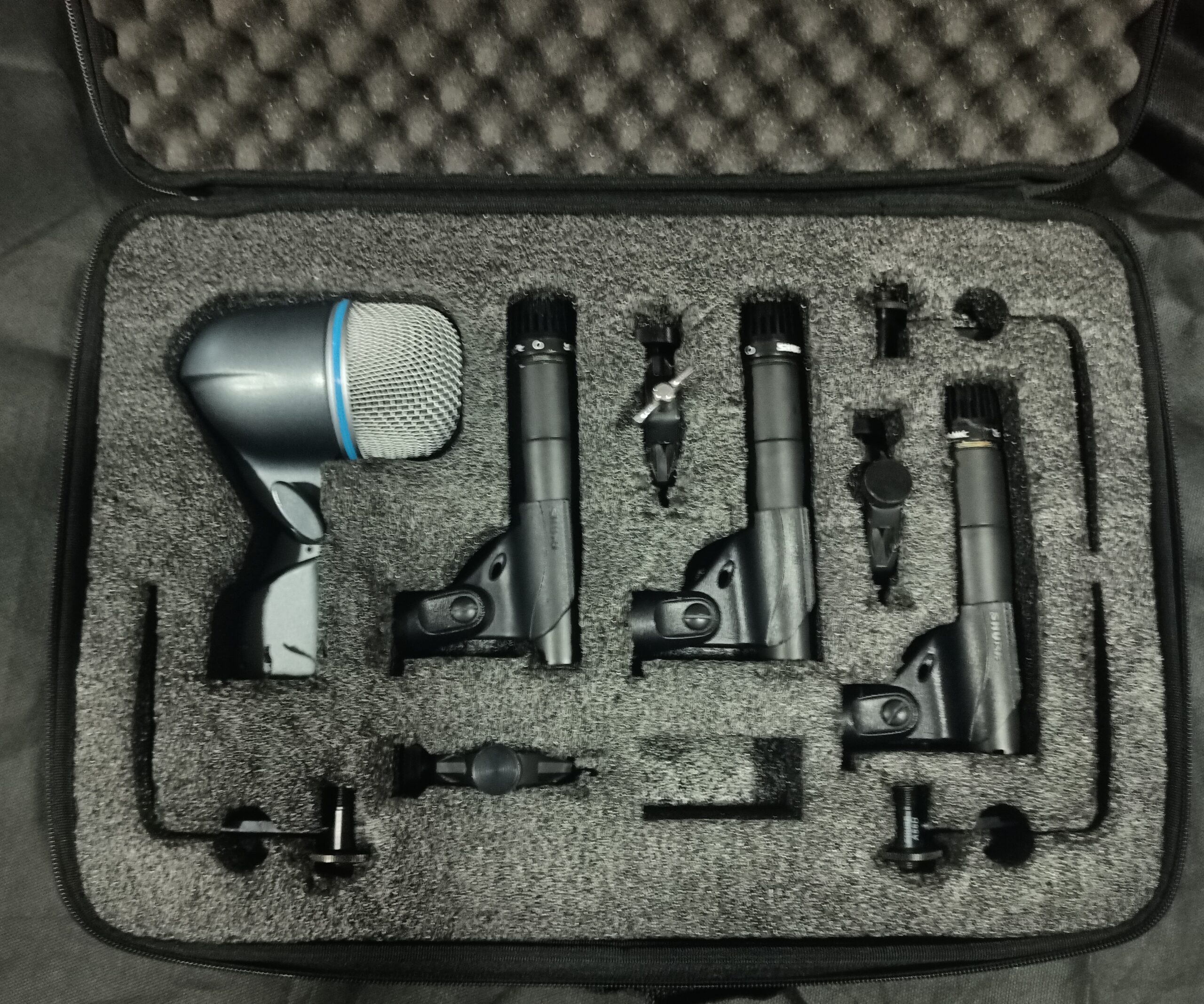 El kit incluye 3 micrófonos de instrumento SM57, perfectos para timbales y cajas, 1 micrófono para bombo Beta 52A, accesorios de montaje y 1 resistente maletín de transporte.