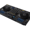 - Sección de efectos avanzados con botones de hold FX On, controles de mezcla efecto / seco, FX rítmicos, de selección de efectos, funciones TAP para ajustar BPM manualmente y hasta 3 efectos por canal